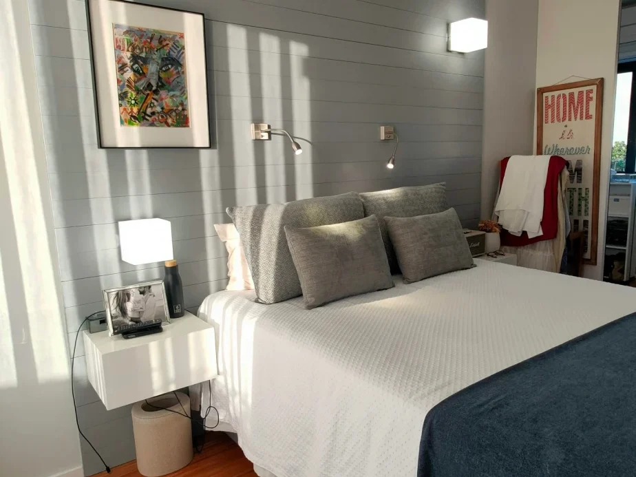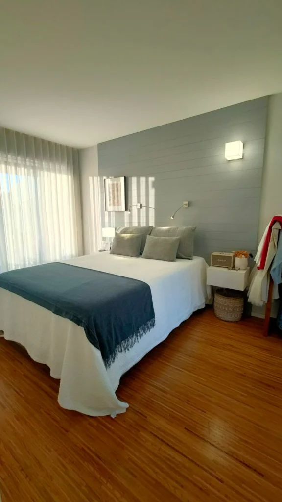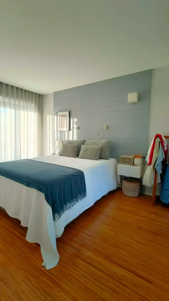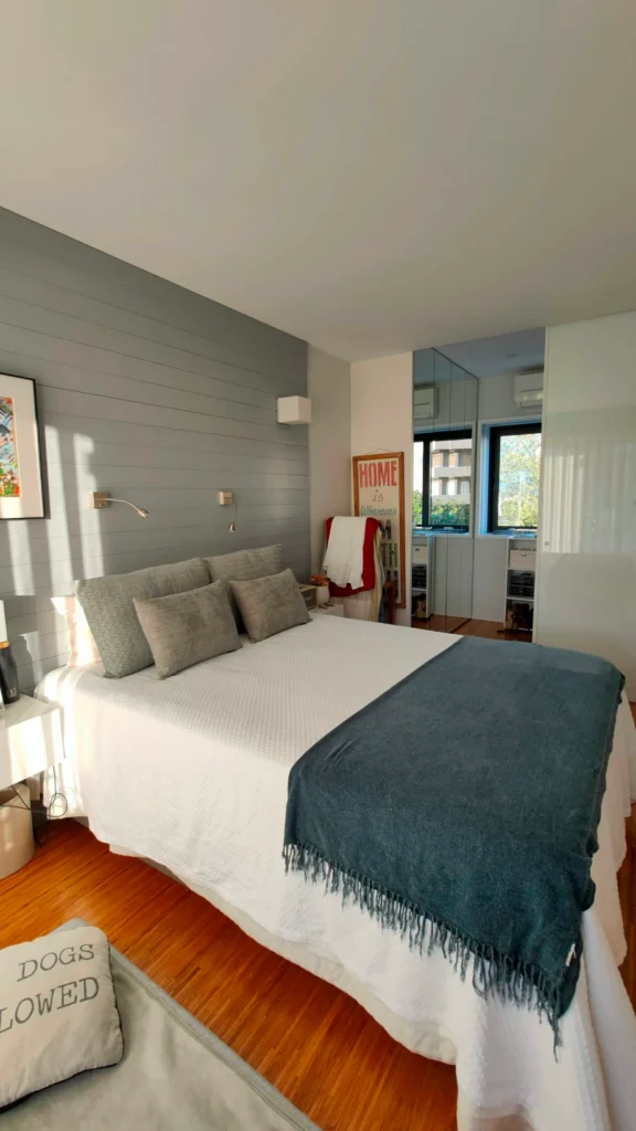 A criação deste quarto de casal foi inserida na nossa primeira intervenção para o cliente, com a renovação do apartamento duplex.